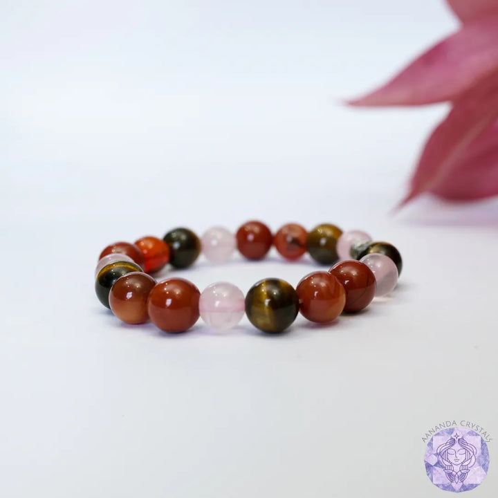 Wearing this Lower Chakra Bracelet helps you align your lower chakras, bringing balance from stability at the Root to love at the Heart. Wear it daily, during meditation, or gift it to a loved one as a meaningful piece of crystal energy jewellery.