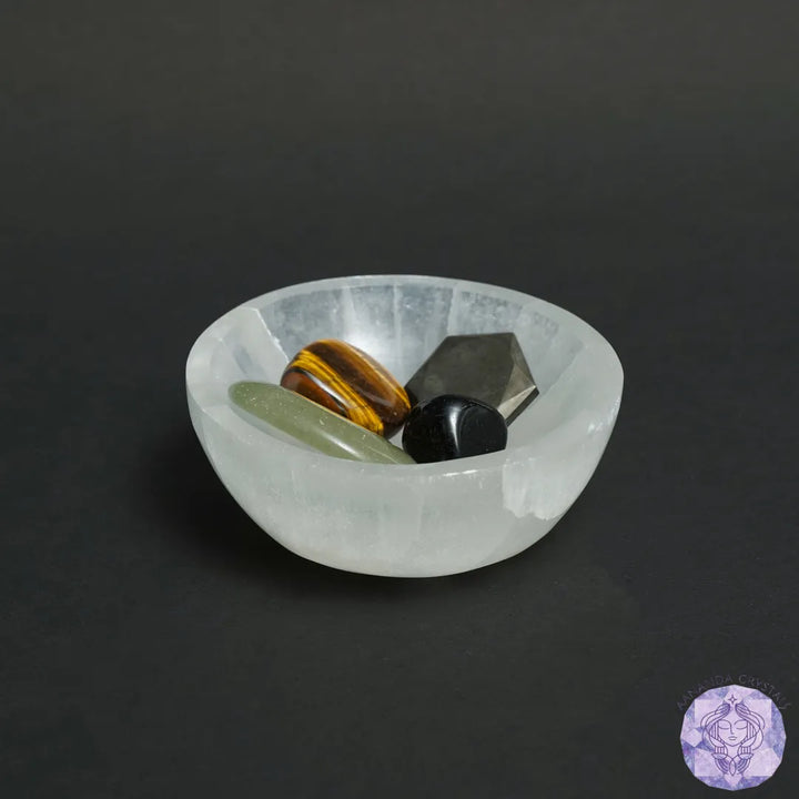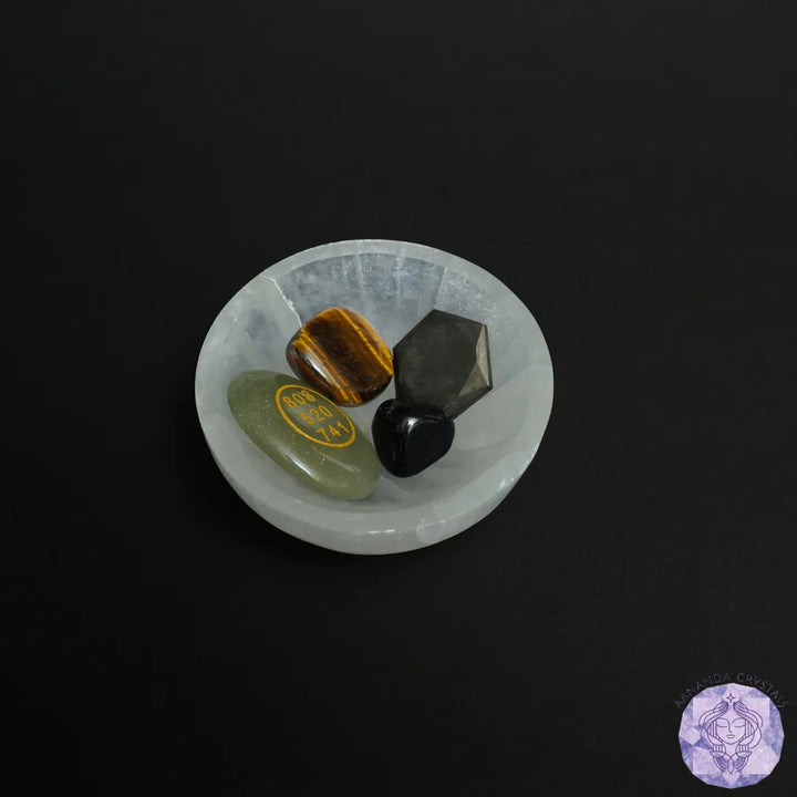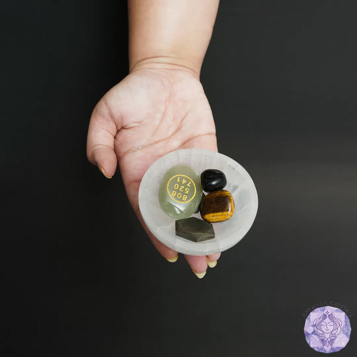 - ✨ Selenite Bowl – A cleansing and high-vibration base, the Selenite bowl charges and amplifies all the crystals, keeping the energy of your business space pure and abundant.